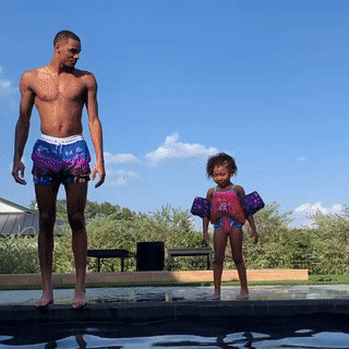 快速比分9月1日讯 今日,马刺后卫德章泰-默里更新了个人Instagram,晒出自己带女儿跳入泳池的片段。