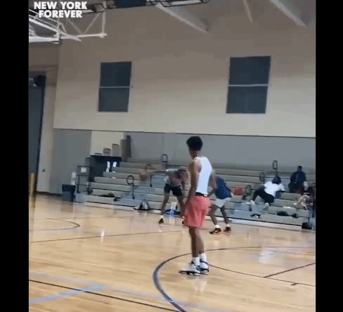 在视频中,罗宾逊利用背后运球过掉防守人,随后迎着另一防守球员完成隔扣。