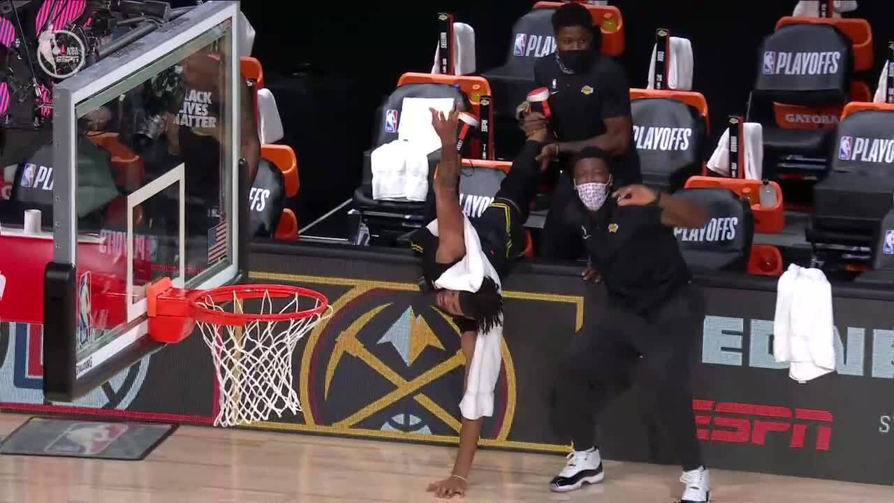 随后,美国媒体ESPN发推晒出大莫里斯命中三分时,替补席上湖人中锋贾维尔-麦基激动的反应(见新闻配图)。