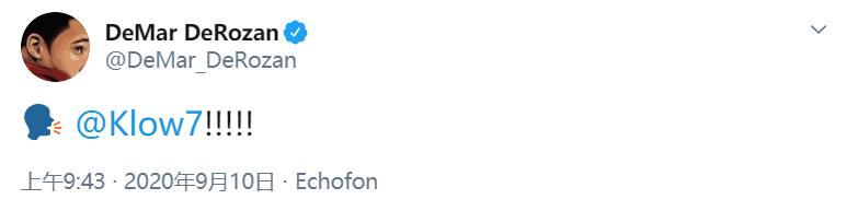 马刺后卫,前猛龙球员德马尔-德罗赞发推赞叹了猛龙后卫凯尔-洛瑞的表现: