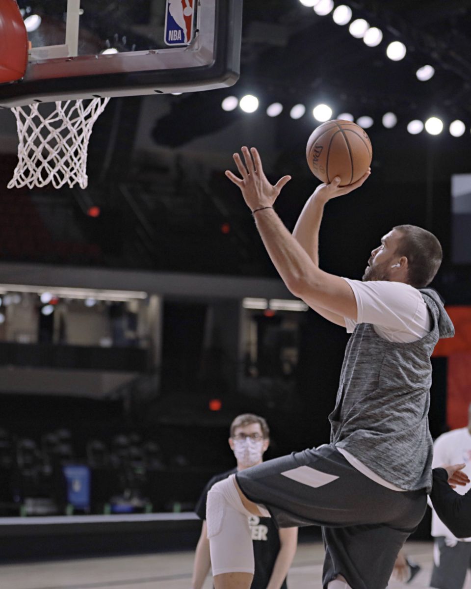 猛龙官方晒出今日球队赛场热身照并写道:“最后的准备。”