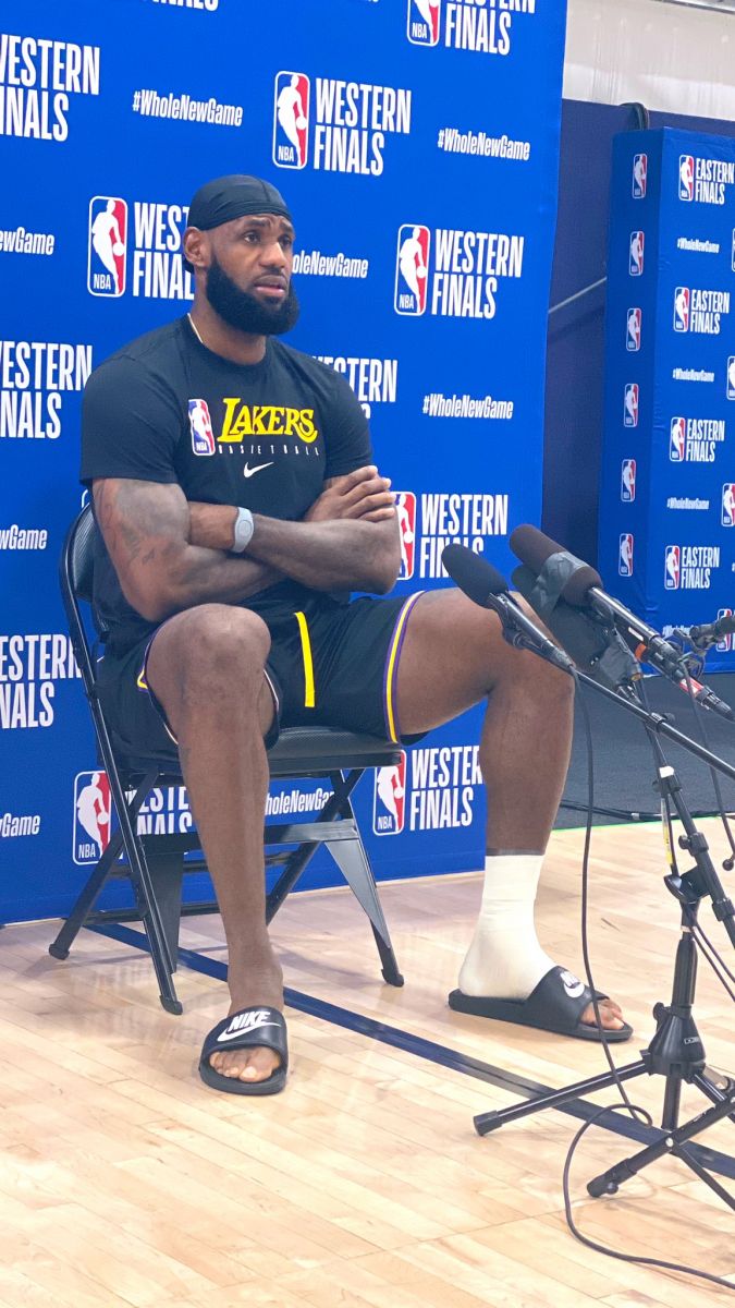 赛后,据现场记者Ben Golliver报道,湖人前锋勒布朗-詹姆斯在接受采访时使用绷带包扎了左脚踝。詹姆斯在第二节的一次突破中不慎扭伤左脚踝,但坚持比赛。不过,詹姆斯在第四节比赛胜负大局已定时提前返回更衣室接受伤情检查。