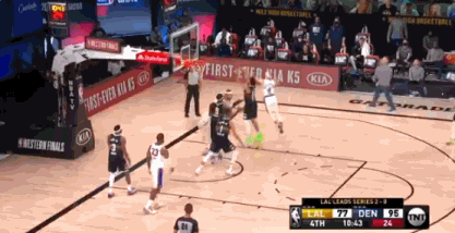 第四节10分36秒掘金后卫贾马尔-默里快攻一条龙暴扣,将分差拉开到20分。