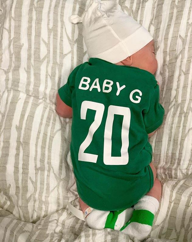 “我们的小男子汉终于来啦!这位是西奥,戈登-西奥多-海沃德。如果你去问海沃德,他会说名字叫GT,但我和女儿们都叫他西奥。我真的很想念你海沃德,等不及想见你了,我们也准备好今晚看你的比赛啦!❤”Robyn如此写道。