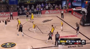 在第三节比赛的最后一分半之内,掘金球员小迈克尔-波特先晃开湖人球员凯尔-库兹马后命中三分球,随后又命中一记准压哨三分。