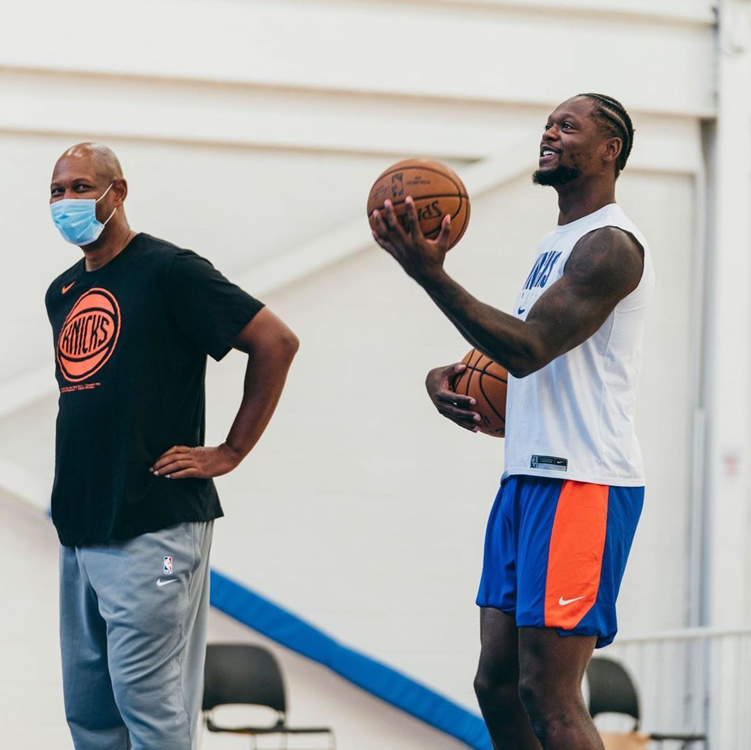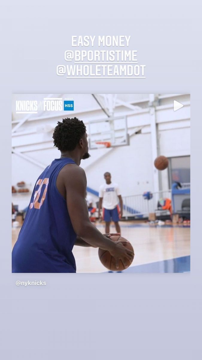 快速比分9月28日讯 今日,尼克斯球员朱利叶斯-兰德尔更新了Instagram Story,转发了尼克斯官方发布的自己投篮训练的照片。