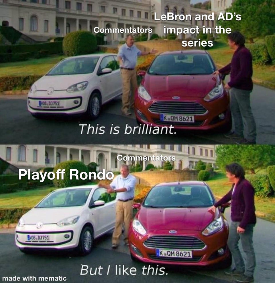 (评论员指詹眉系列赛的影响力:这很赞;再指季后赛隆多:但我更爱这个)