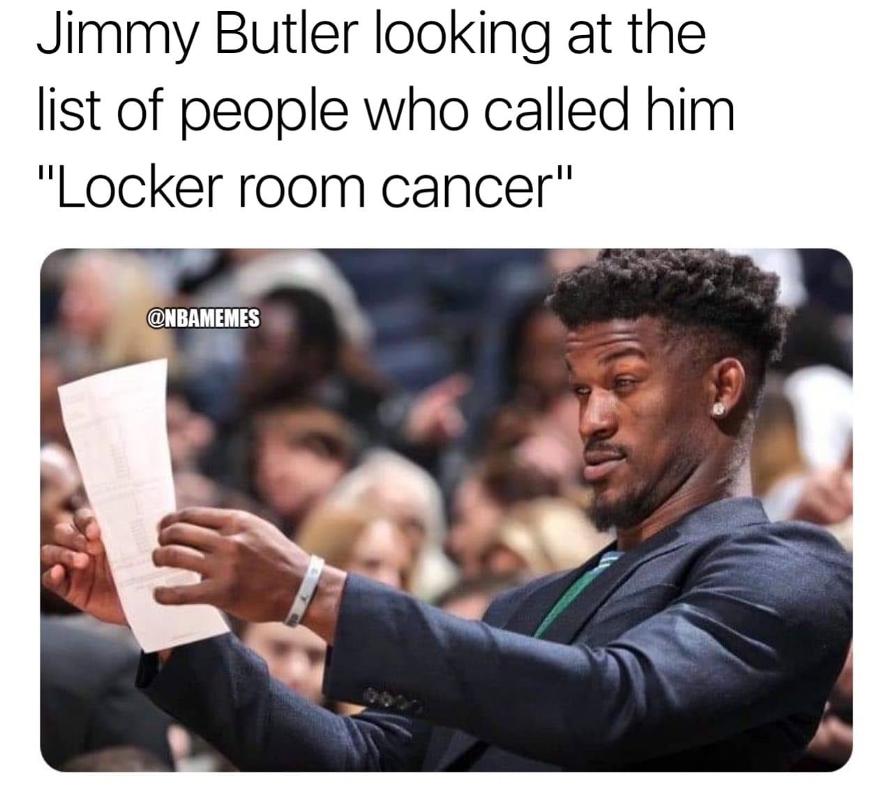 (巴特勒看着那些说他是“更衣室毒瘤”的人的名单)