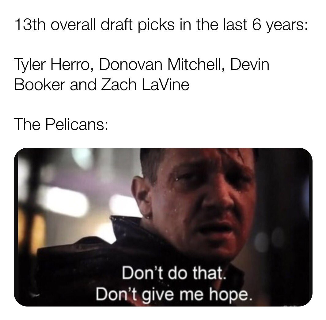 (近6年的13顺位选秀名单,鹈鹕:不要这样做,不要给我希望)