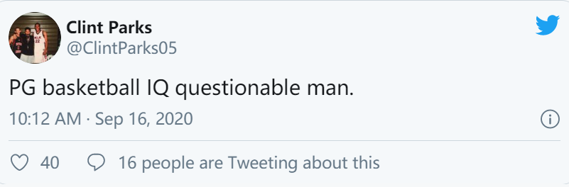 帕克斯在当地时间9月16日快船抢七遭到掘金逆转之后发推写道:“PG(保罗-乔治)的篮球智商存在问题。”(下图)