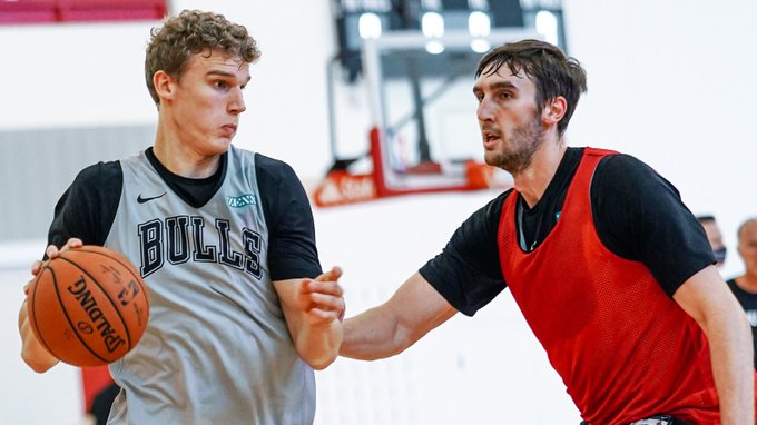 快速比分9月29日讯 公牛官方推特今日发布了一组最新球队训练照(见新闻配图),并且配文写道:“篮球手”