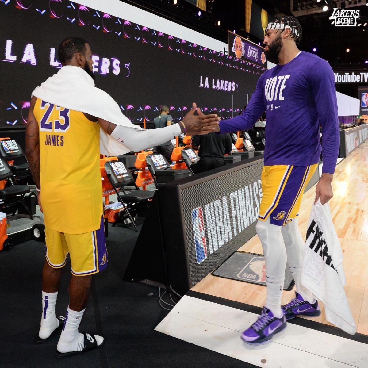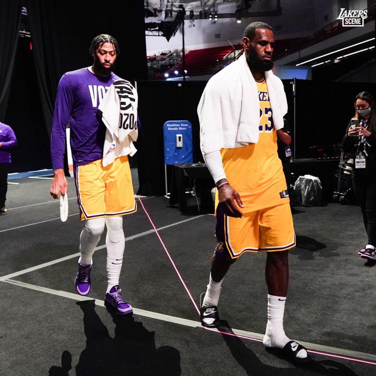 快速比分10月1日讯 在今天的比赛中,湖人116-98击败热火,总决赛1-0领先。赛后,NBA官方及湖人官方Instagram发布了湖人前锋勒布朗-詹姆斯和安东尼-戴维斯赛后一同离场的组图。