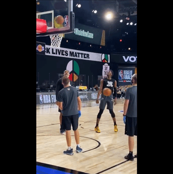 快速比分10月7日讯 今天上午9点,湖人和热火将迎来总决赛第4场的比赛。赛前,热火球员巴姆-阿德巴约进行了热身训练。