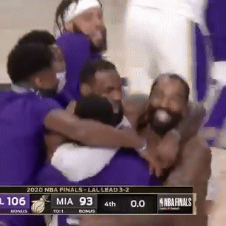 赛后,Ballislife更新推特,晒出一张湖人球员拥抱的动图祝贺湖人夺得冠军。