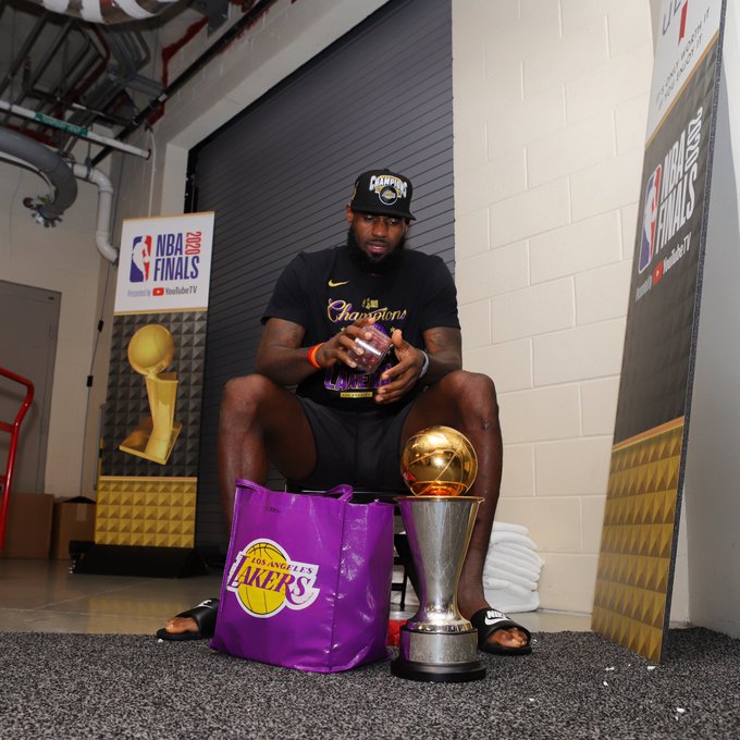 赛后,NBA官方推特晒出了湖人球员勒布朗-詹姆斯赛后休息照片(下图),配文写道:“闲时小憩。”