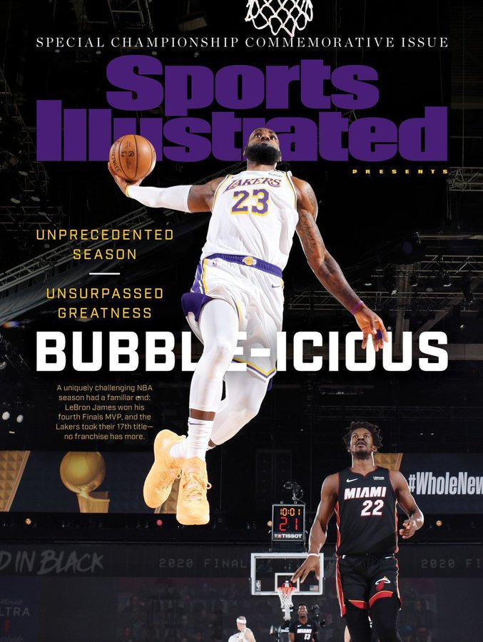 快速比分10月13日讯 美国媒体《体育画报》今日在推特上发布了最新一期杂志封面人物湖人球员勒布朗-詹姆斯(见新闻配图)。 配文写道:“湖人总冠军