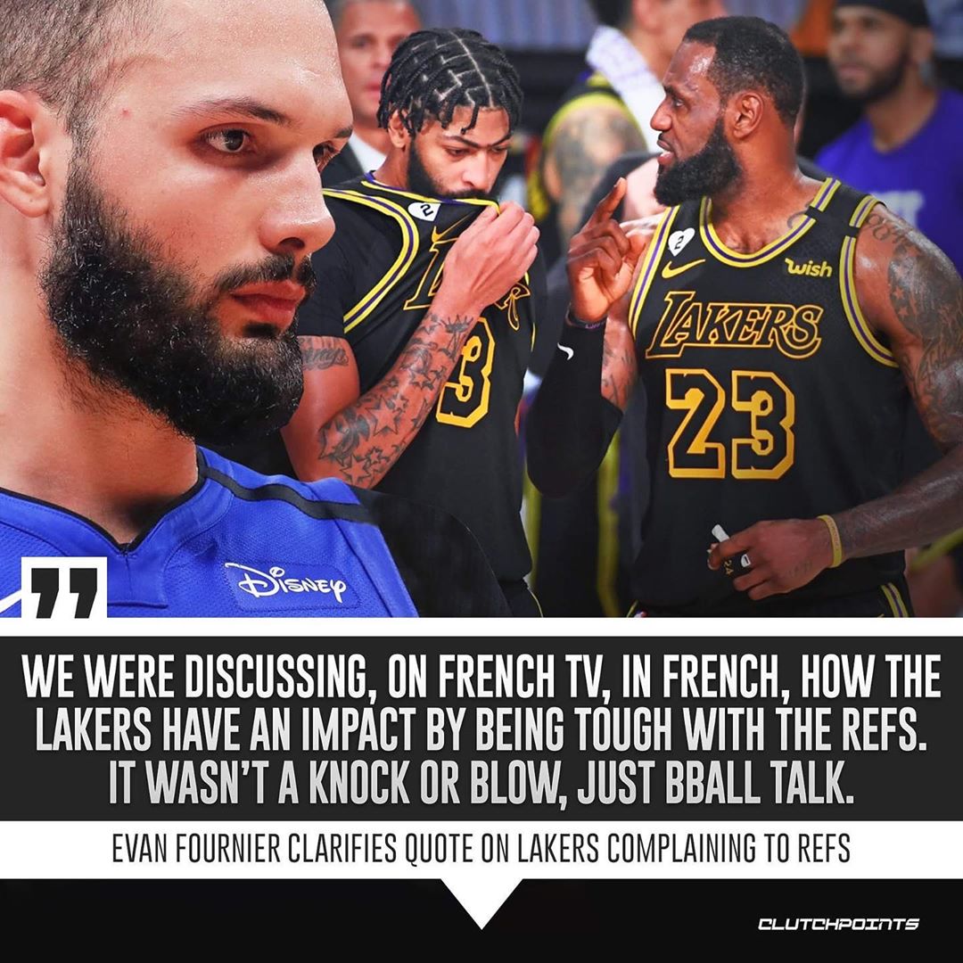 快速比分10月13日讯 今日,魔术球员埃文-富尼耶接受了记者采访,谈到了自己此前关于湖人向裁判抱怨的相关言论。 “我们是在法国的电视节目上讨论湖人如何通过