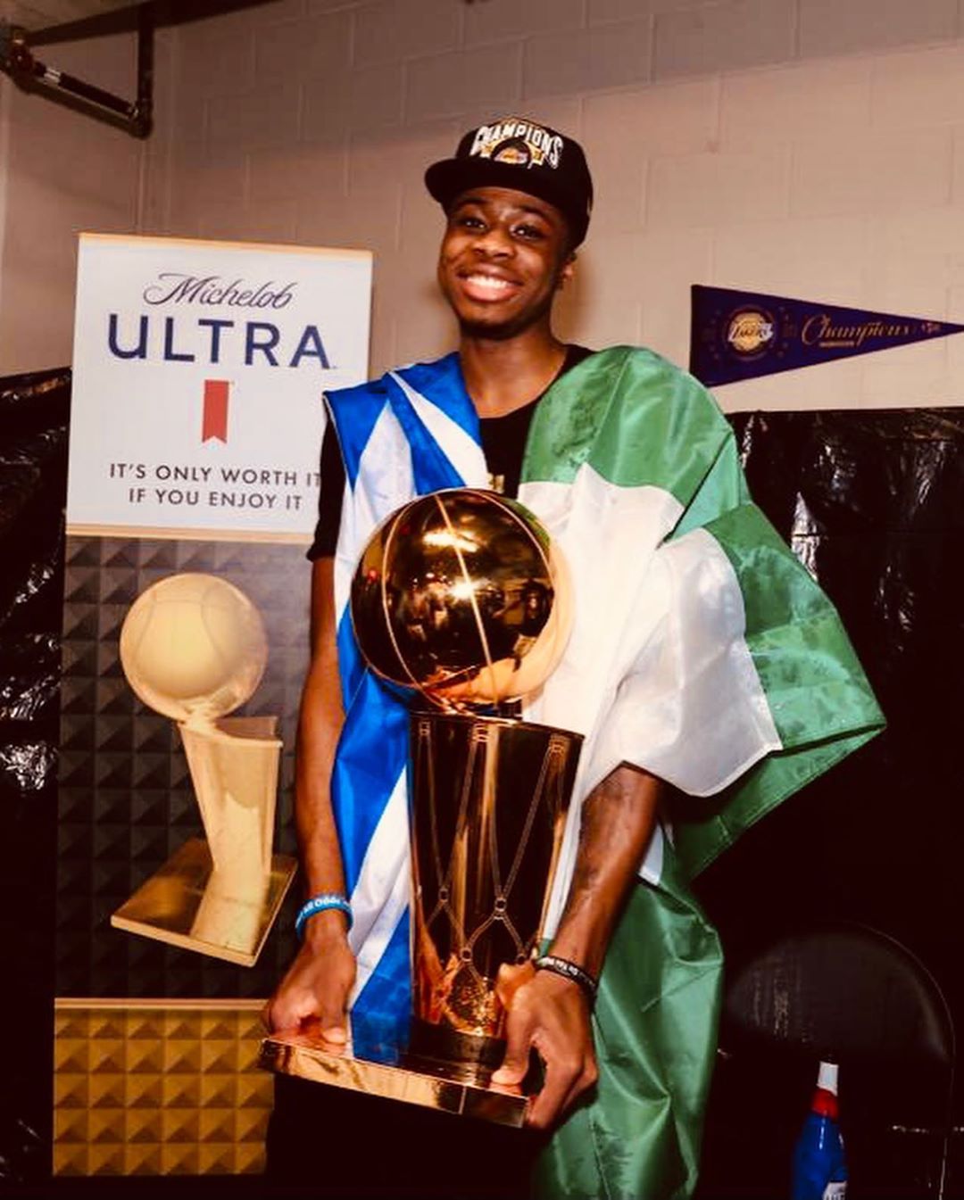 快速比分10月12日讯 今日结束的总决赛第六场中,湖人以106-93击败热火,系列赛大比分4-2夺得总冠军。 雄鹿前锋扬尼斯-阿德托昆博更新了个人Inst