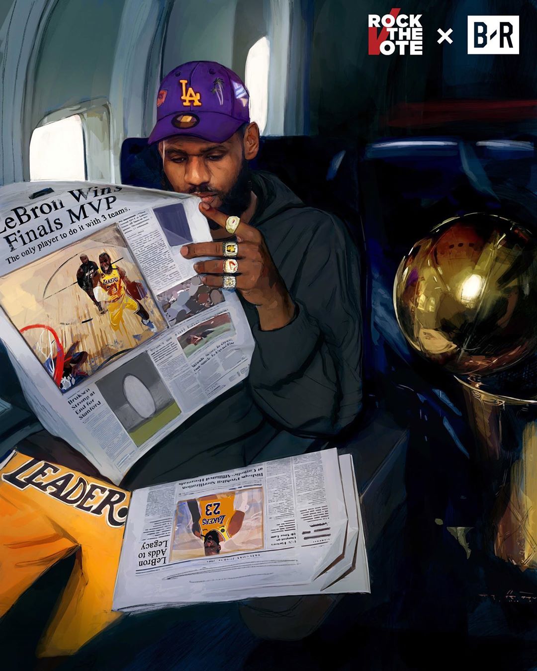 BR晒詹姆斯合成图:勒布朗拿下了生涯第四座FMVP奖杯