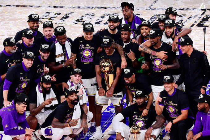 队史第17冠!湖人官推晒出全队夺冠大合照