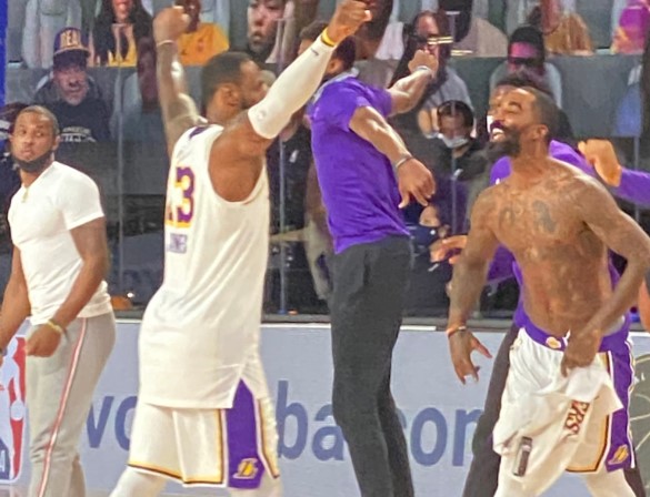 快速比分10月12日讯 今日,湖人对阵热火的总决赛G6已经结束,湖人以106-93取胜,赢得今年总冠军。 锁定冠军之后,湖人后卫JR-史密斯脱下上衣,光着