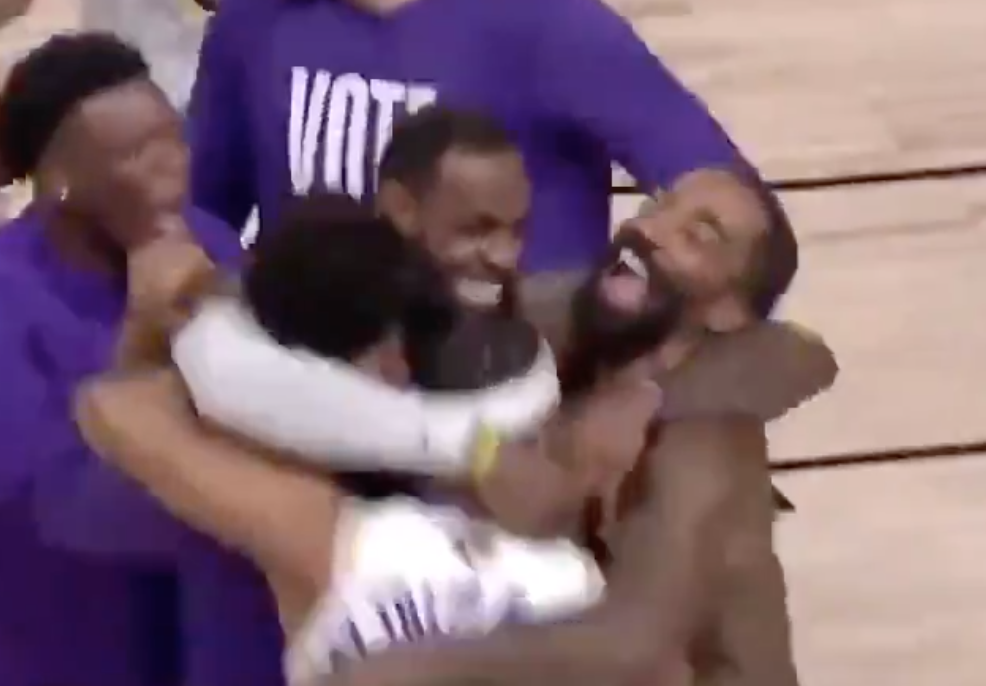 美媒晒湖人球员拥抱动图祝贺湖人夺得总冠军