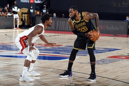 快速比分10月10日讯 在今日正在进行的NBA总决赛第五场比赛中,湖人与热火现正激战正酣。 半场结束后,热火球员吉米-巴特勒打出了20分+5篮板+5助攻+