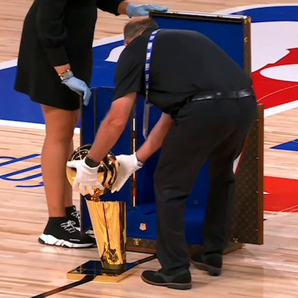 快速比分10月10日讯 据ESPN官方推特报道,今日总决赛G5赛前,NBA官方工作人员已经将总冠军奖杯拉里-奥布莱恩杯运送并放置在比赛现场。 目前湖人手握