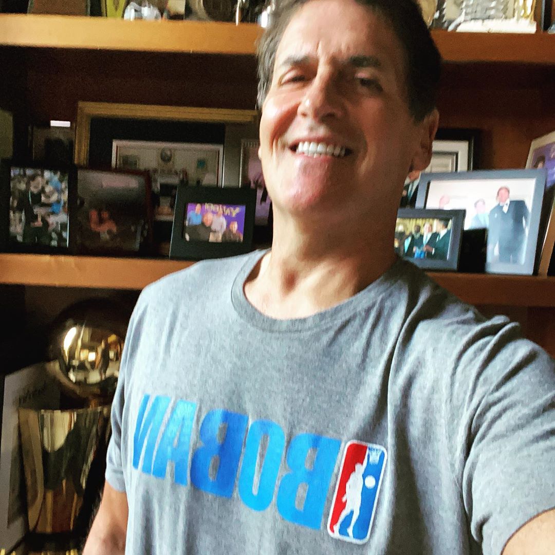 准备开视频会议!库班晒身穿印有博班名字T恤的照片