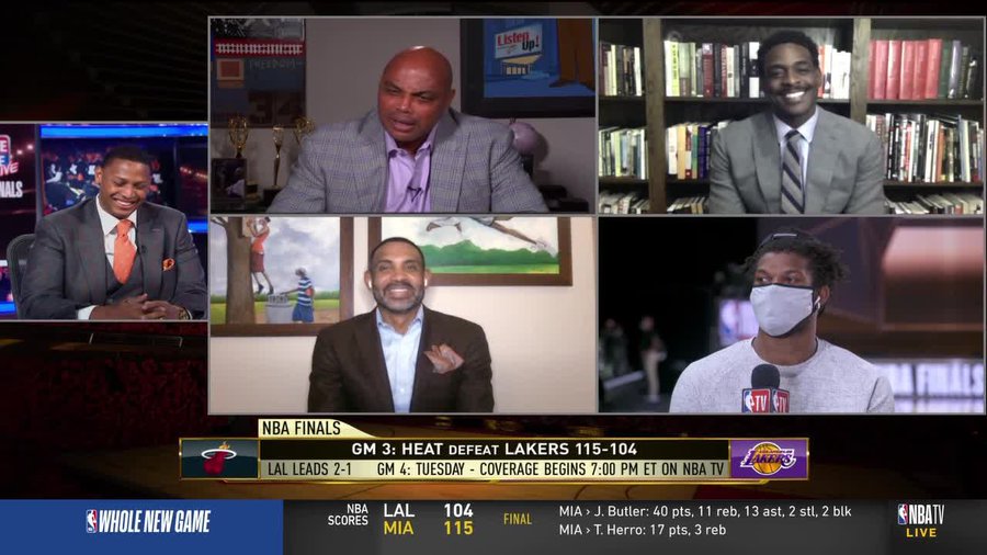 快速比分10月6日讯 今日,TNT评论员查尔斯-巴克利和热火前锋吉米-巴特勒就巴特勒在复赛园区内出售的大脸咖啡展开了一番对话。 巴克利问:“首先,你的大咖