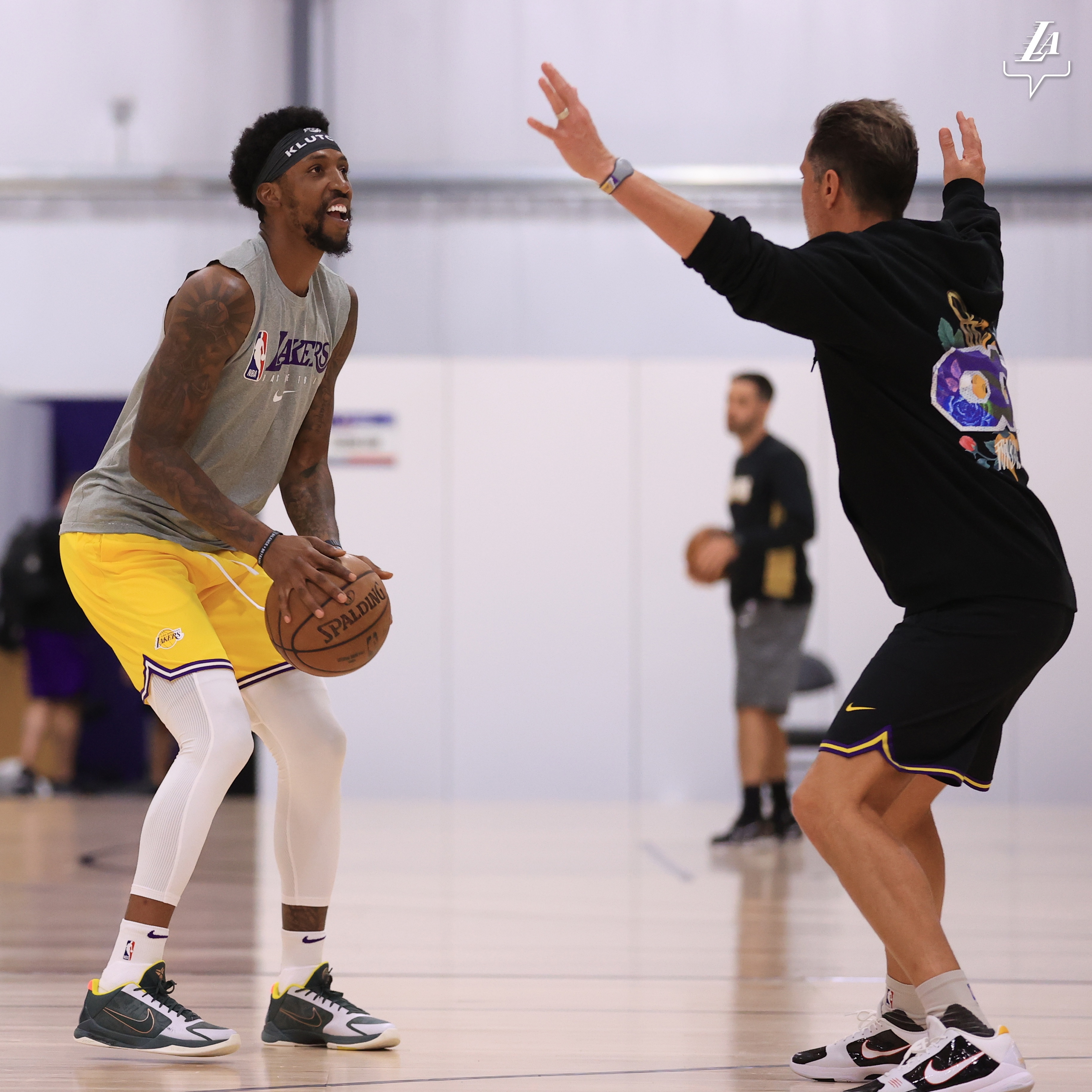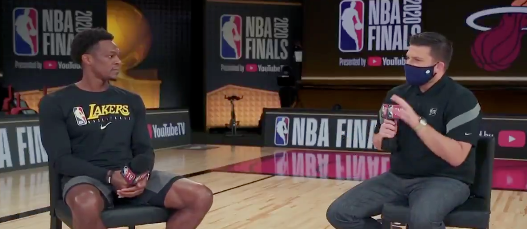 快速比分10月2日讯 湖人球员拉简-隆多在今日训练结束后接受了媒体采访。 谈到有机会在凯尔特人和湖人均夺得总冠军,隆多说:“我上个赛季与湖人签约后就和总经