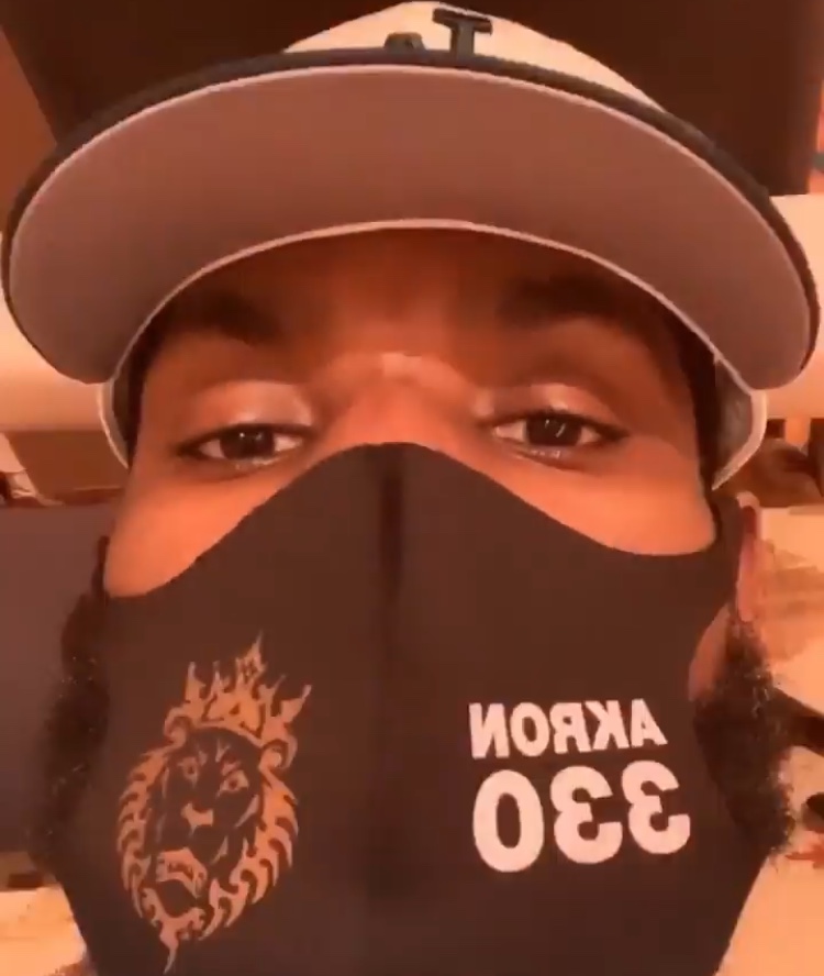 快速比分10月2日讯 湖人前锋勒布朗-詹姆斯今日更新Instagram Story晒出自拍动态。 詹姆斯戴着印有“330阿克伦”的口罩展示自拍,并写道:“