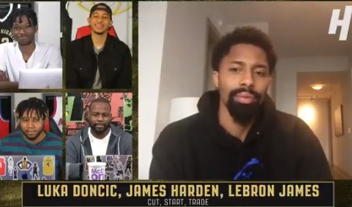 快速比分10月2日讯 今日,篮网后卫斯潘塞-丁威迪参加了一档节目。 主持人向他提问,让他在火箭后卫詹姆斯-哈登、独行侠球员卢卡-东契奇和湖人前锋勒布朗-詹
