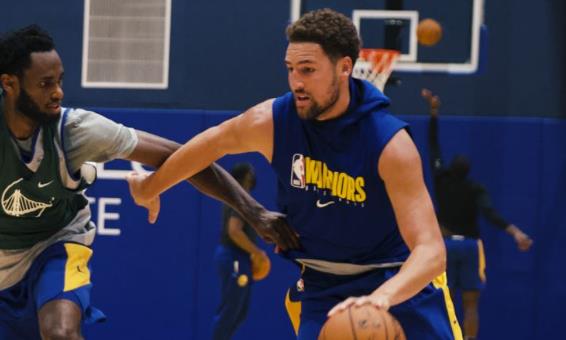 克莱-汤普森自受伤后首次参加球队的5对5对抗训练赛