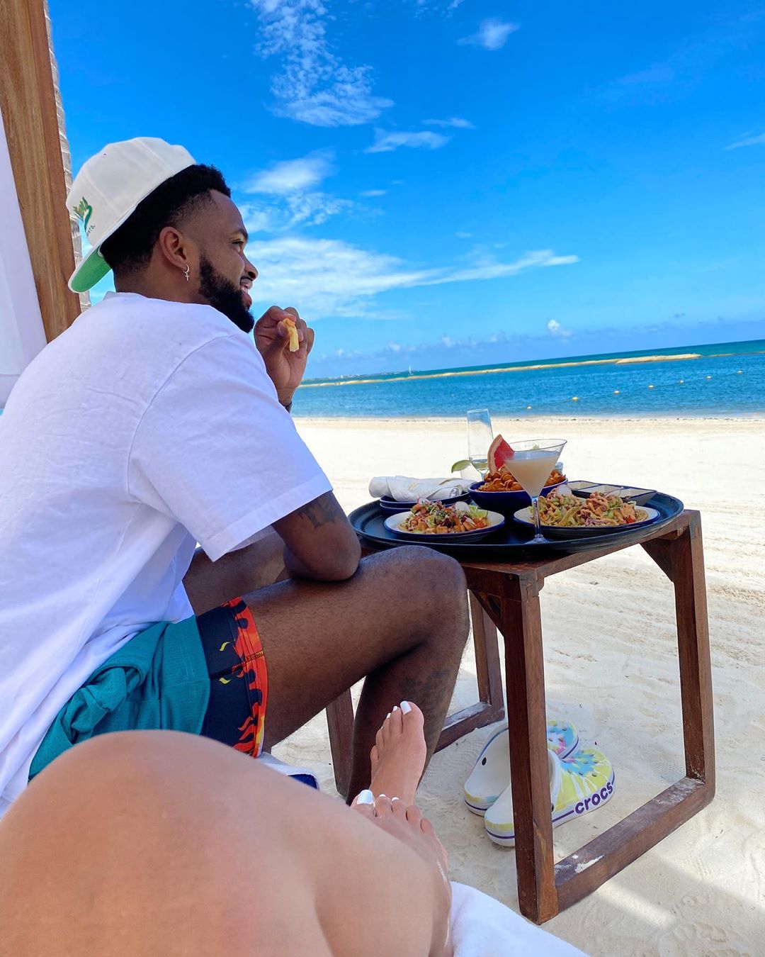 快速比分9月29日讯 今日,掘金球员特洛伊-丹尼尔斯更新了个人Instagram,晒出与妻子在海边度假的照片。 丹尼尔斯写道:“在宾馆隔离80天也值了,因
