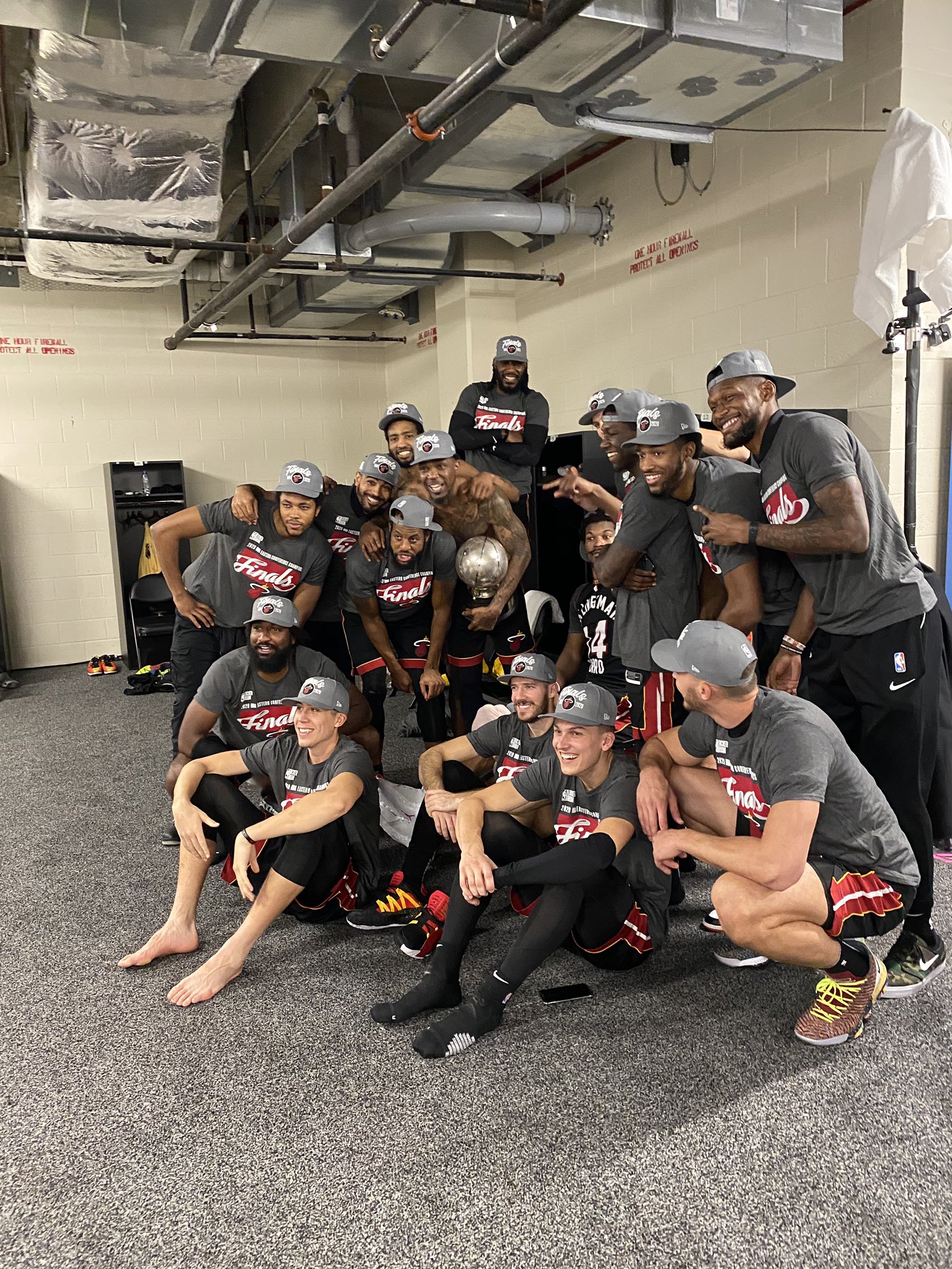 快速比分9月28日讯 在今日结束的东部决赛第六场中,热火以125-113击败凯尔特人,系列赛大比分4-2晋级总决赛会师湖人。 赛后,美国媒体晒出了热火球员