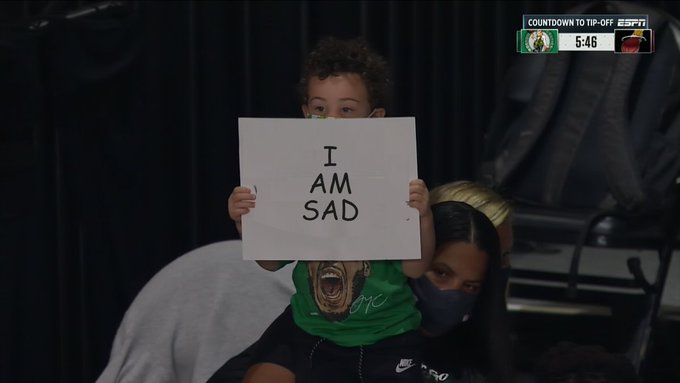 快速比分9月28日讯 在今日结束的东部决赛第六场中,热火以125-113击败凯尔特人,系列赛大比分4-2晋级总决赛会师湖人。在比赛进行期间,媒体抓拍到了凯尔特人