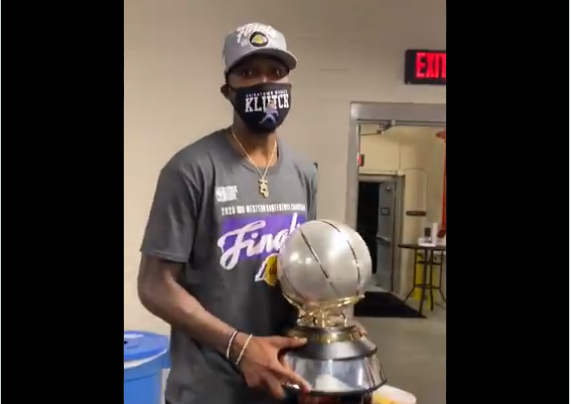 手捧奖杯!湖人官方发布更衣室庆祝照:进军最后一轮