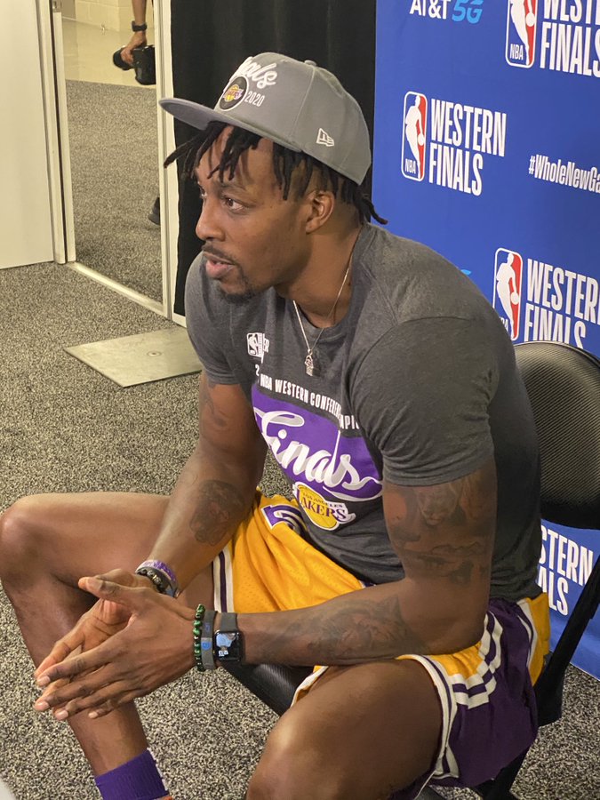 快速比分9月27日讯 在今日结束的西部决赛第五场中,湖人以117-107击败掘金,系列赛大比分4-1昂首挺进总决赛。赛后,湖人球员德怀特-霍华德接受了媒体采访。