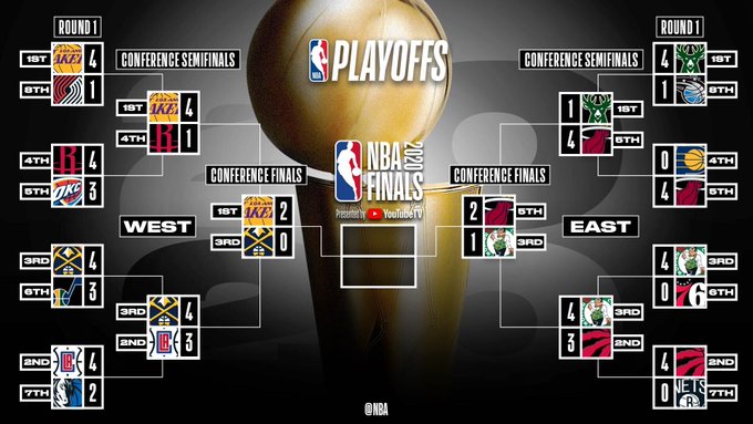 快速比分9月21日讯 NBA季后赛今日的比赛已经结束,赛后,NBA官方推特发布了最新对阵图(见新闻配图)。 在今日结束的西部决赛第二战中,凭借安东尼-戴维
