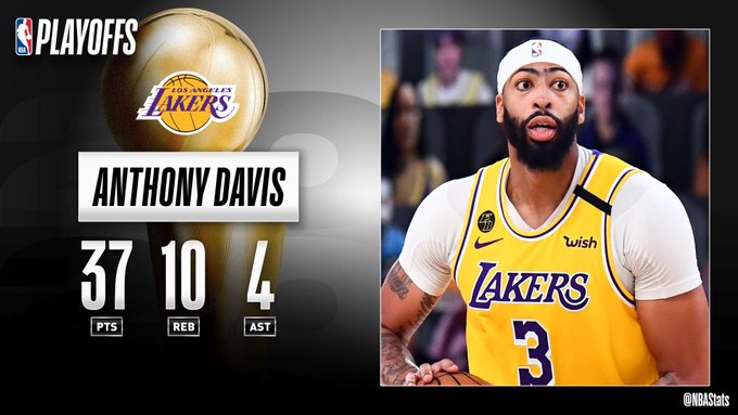 快速比分9月19日讯 NBA官方评选出了今日比赛的最佳数据,湖人内线安东尼-戴维斯以37分10篮板4助攻的数据,成功当选。 在今天的比赛,全场出战33分钟