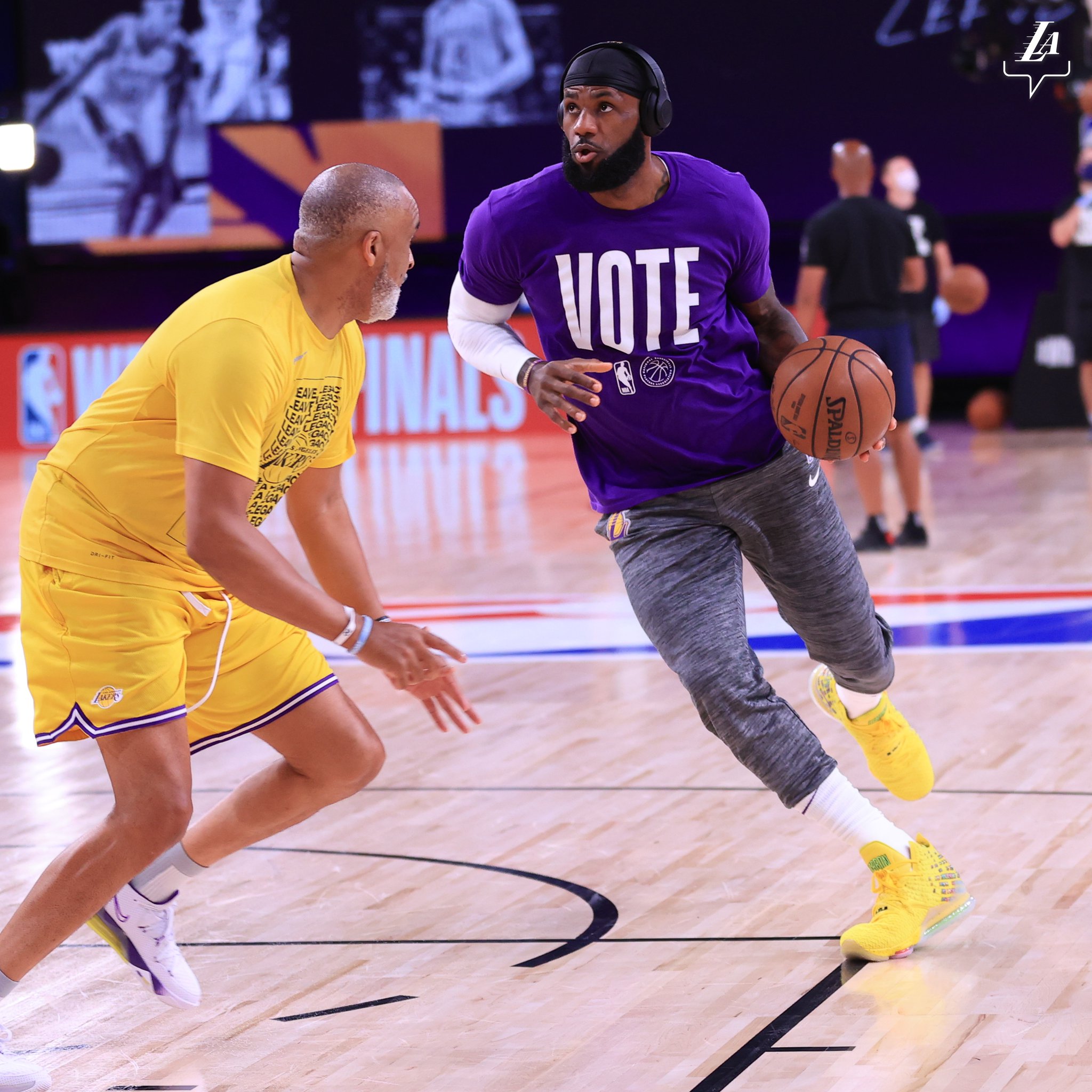大战在即!湖人官推发布詹眉赛前热身照:那项任务