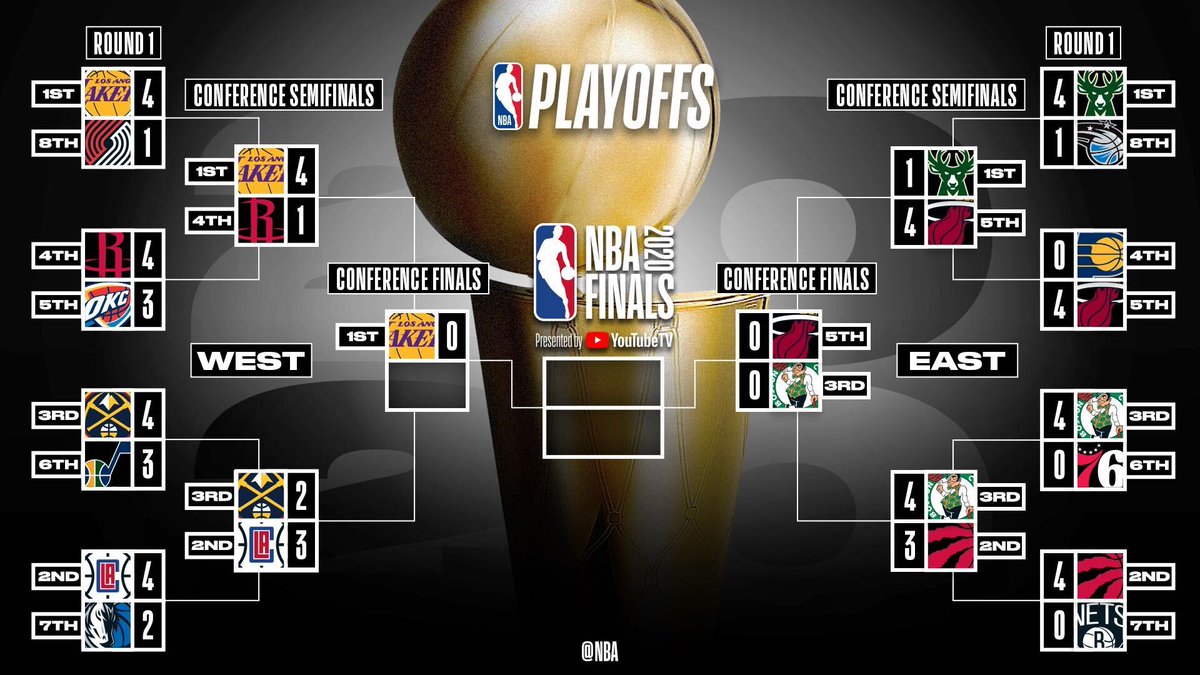NBA官推晒对阵图:湖人连下四城昂首晋级,绿军热火会师