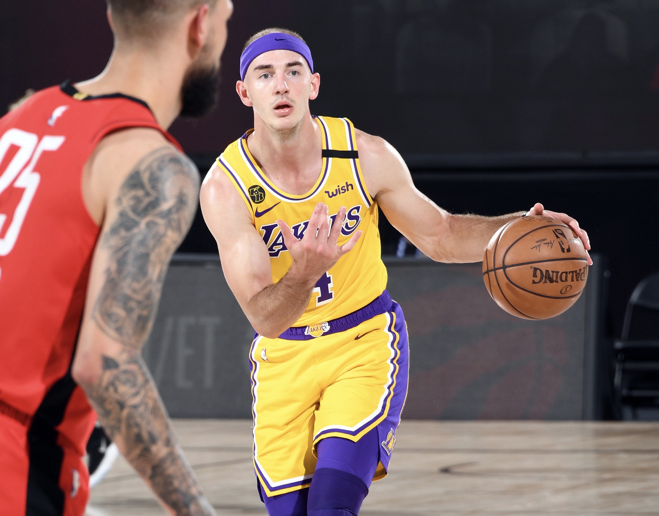 快速比分9月12日讯 据湖人官网记者Mike Trudell报道,截止今日的湖人队内季后赛个人净效值数据显示,在场均出场至少15分钟的球员中,湖人后卫亚历克斯-