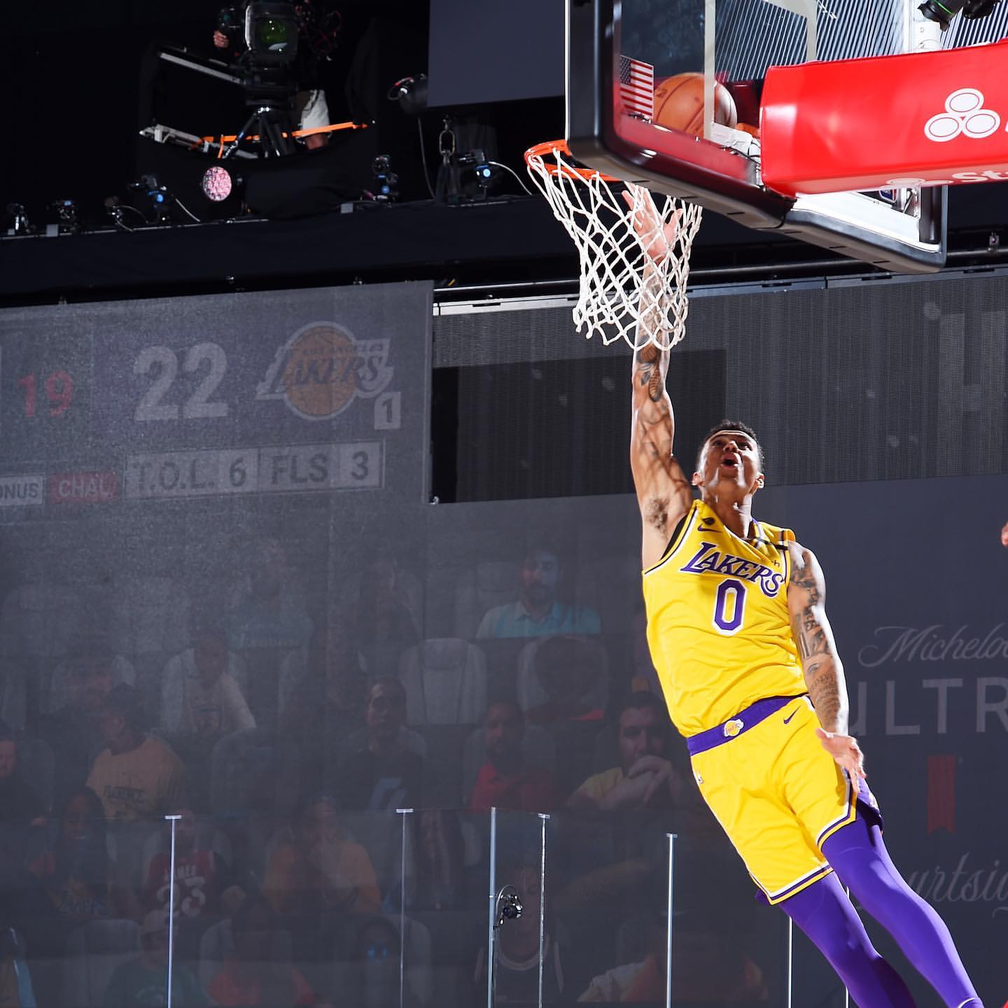 快速比分9月12日讯 湖人前锋凯尔-库兹马今日更新Instagram发布一组个人近期赛场照。 “刻苦磨砺,直到它让我受益。”库兹马写道。