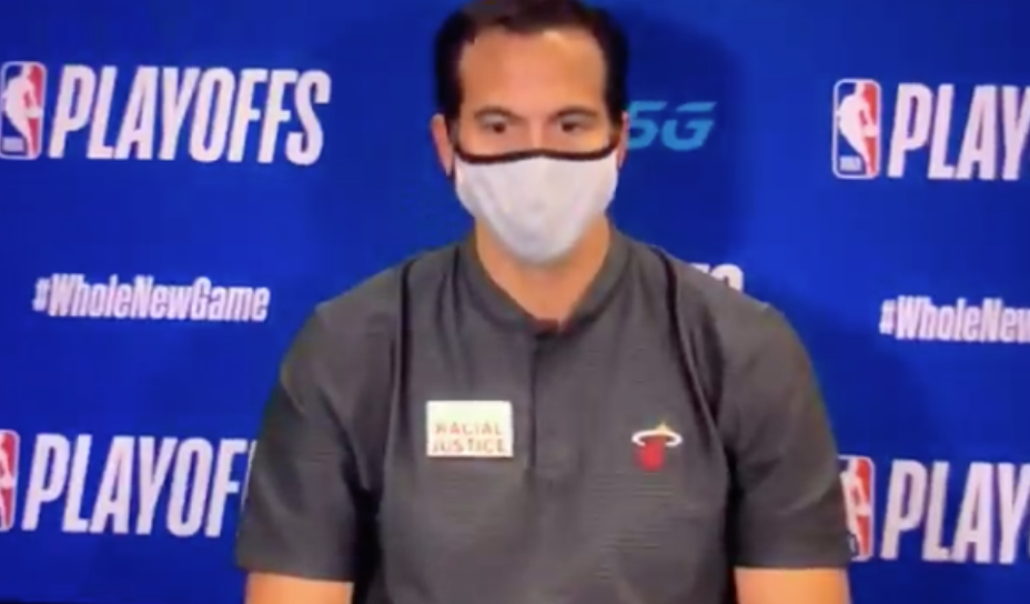 快速比分9月9日讯 在今日结束的NBA比赛中,热火103-94击败雄鹿,以大比分4-1成功晋级东部决赛。 赛后,热火主教练埃里克-斯波尔斯特拉接受记者采访