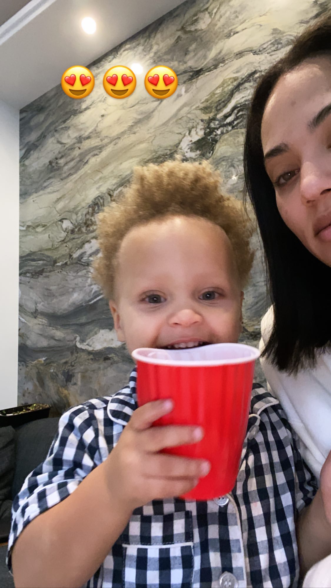遗传爱吃爆米花的基因?阿耶莎晒儿子手捧爆米花桶的照片