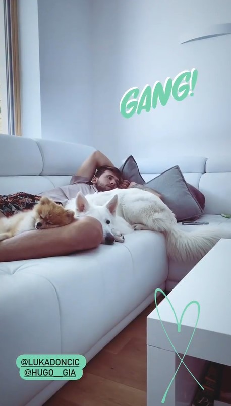 快速比分9月8日讯 今日,独行侠前锋卢卡-东契奇的女友更新了个人Instagram Story,晒出东契奇与爱犬躺在一起的照片。 本赛季季后赛东契奇场均上
