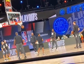 快速比分9月6日讯 今日,快船前锋保罗-乔治的女友更新了个人Instagram Story,晒出自己在场边观战快船对掘金西部半决赛第二场的比赛。 目前比赛