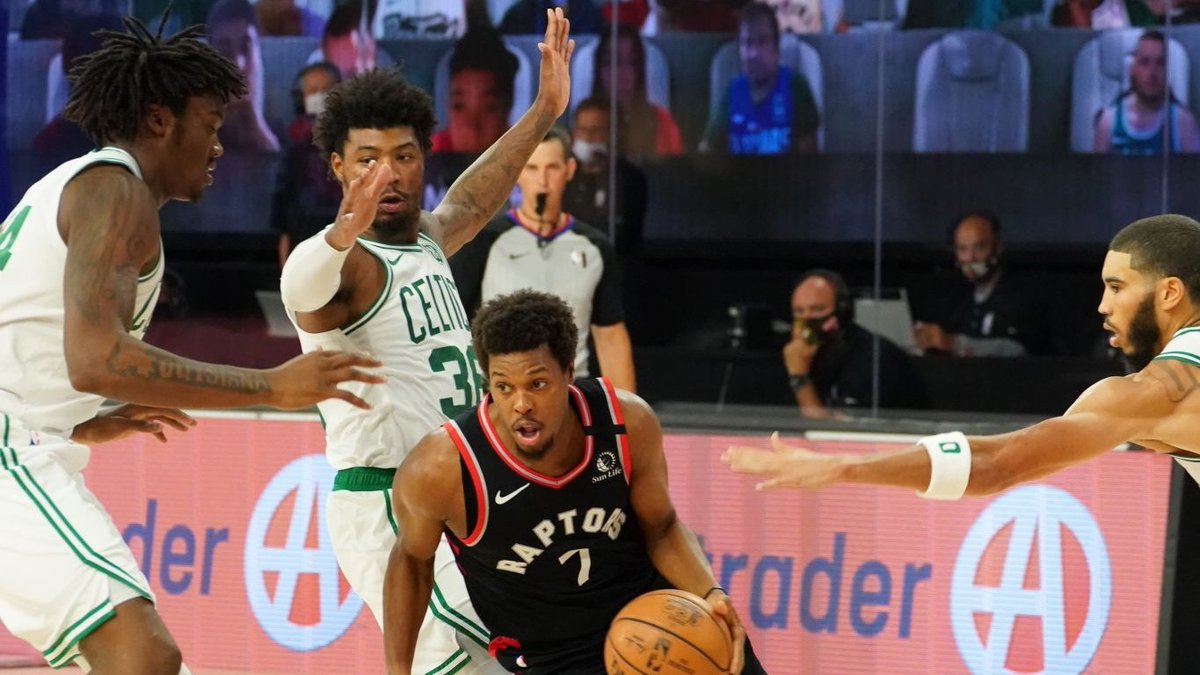 快速比分9月6日讯 在今日结束的一场季后赛中,猛龙以100-93击败凯尔特人,系列赛大比分2-2平。 本场比赛,猛龙球员凯尔-洛瑞出场44分钟,16投5中